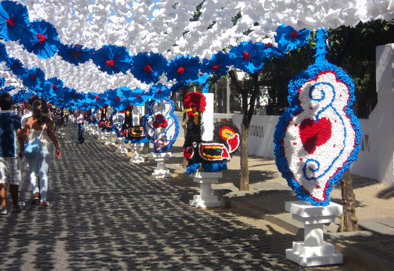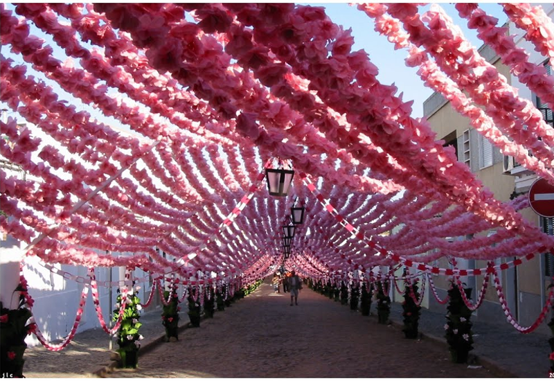 As Festas do Povo de Campo Maior são uma tradição única em Portugal, onde os moradores decoram as ruas com flores de papel feitas à mão, transformando a vila em jardins coloridos, sendo reconhecidas como Património Cultural Imaterial da Humanidade pela UNESCO.